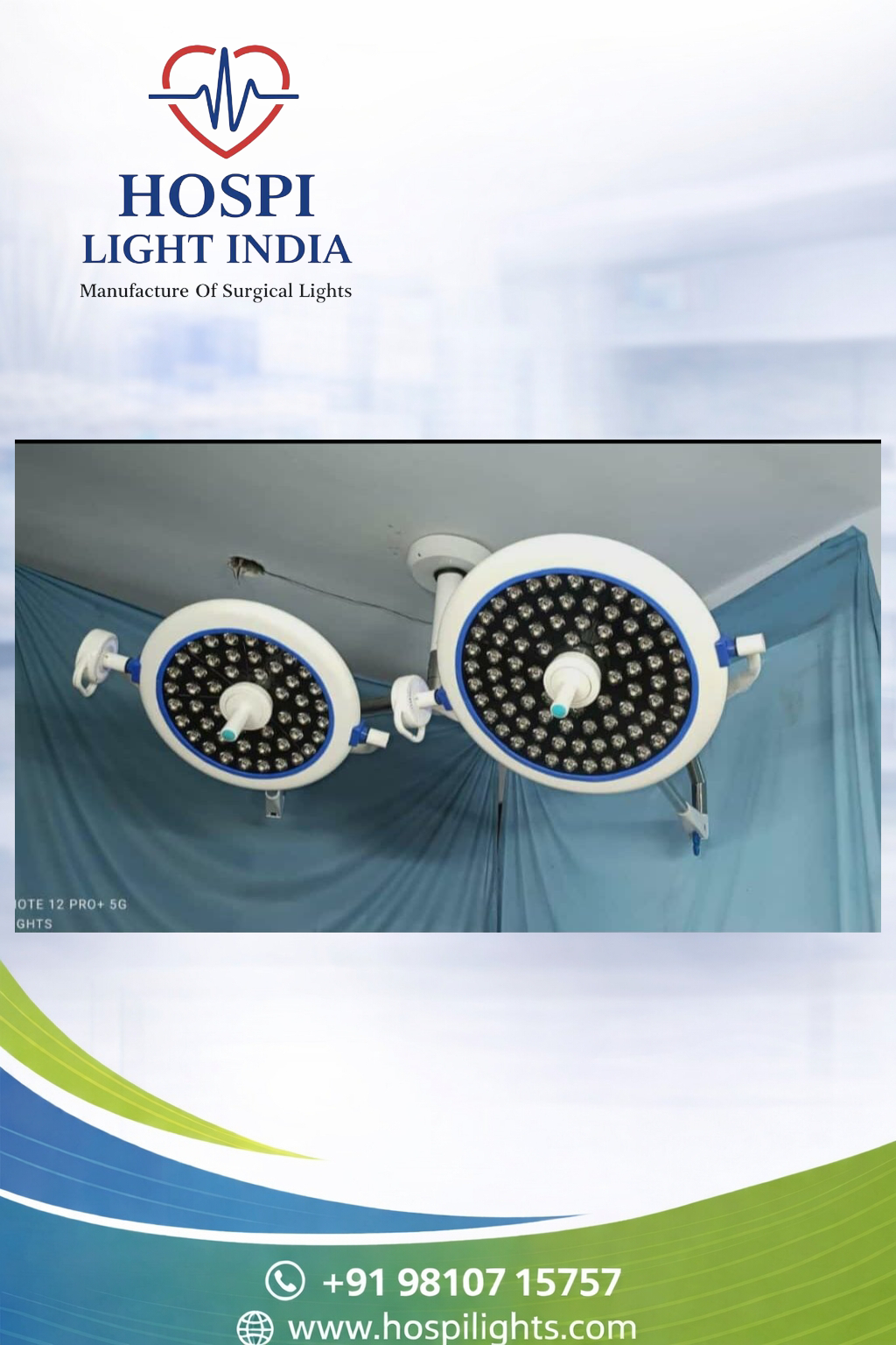 HOSPI PARI'S 80+80 is a premium aluminum-bodied surgical light featuring 80 LEDs per dome for a powerful lux intensity of 1,80,000 + 1,80,000, ensuring shadowless, uniform lighting during procedures. It offers a color rendering index of 95, color temperature of 4000-5000K, and dimming from 10-100% via remote control or sterilizable handle. Key highlights include an adjustable light field of 12-30 cm, >50,000-hour LED life, yellow and white LED combination for natural illumination, and focusable optics for precise surgical visualization.