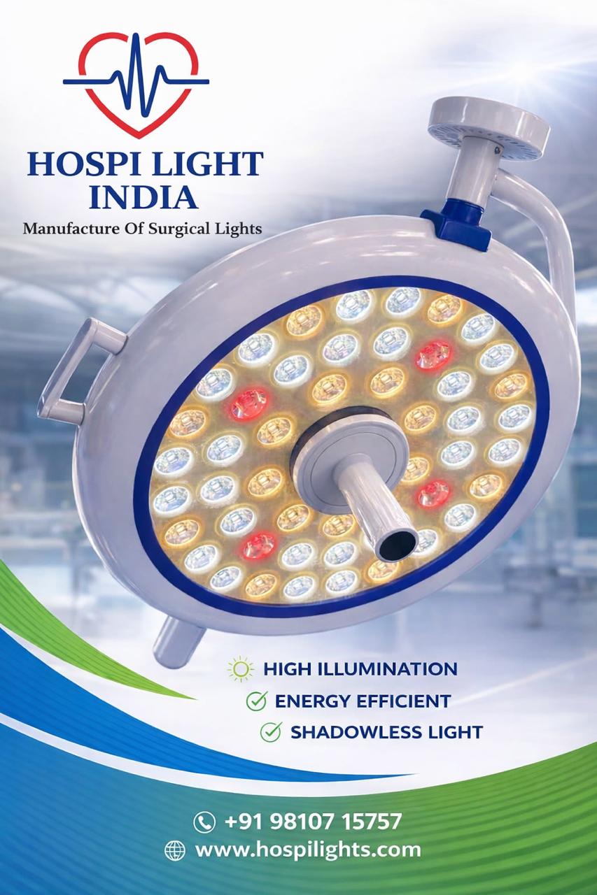 The HOSPI PARI'S 48 from Hospilight India features a complete aluminum body and 48 premium German-made OSRAM LEDs, delivering 1,60,000 lux for shadowless, precise Led Ot light. Its 95 color rendering index ensures accurate tissue visualization, while the adjustable 4200-6500K color temperature and 10-100% dimming adapt to diverse procedures.